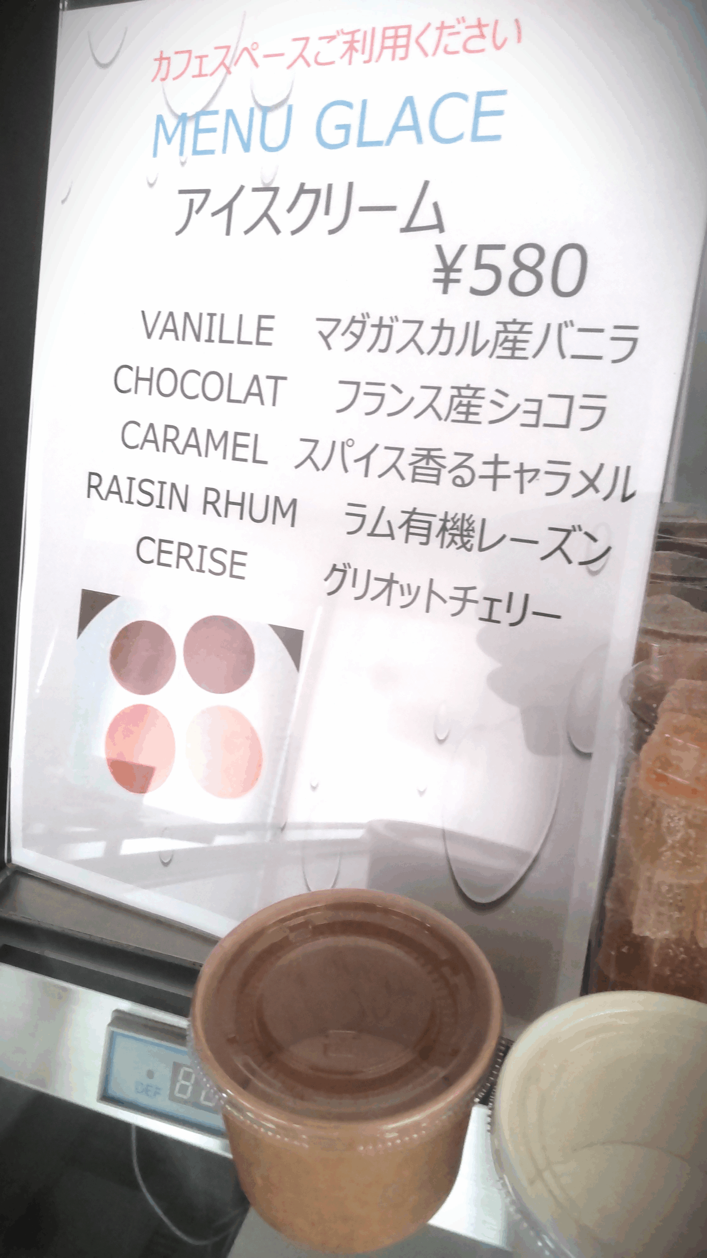 店頭にてアイスクリーム(各¥580)販売中です。
