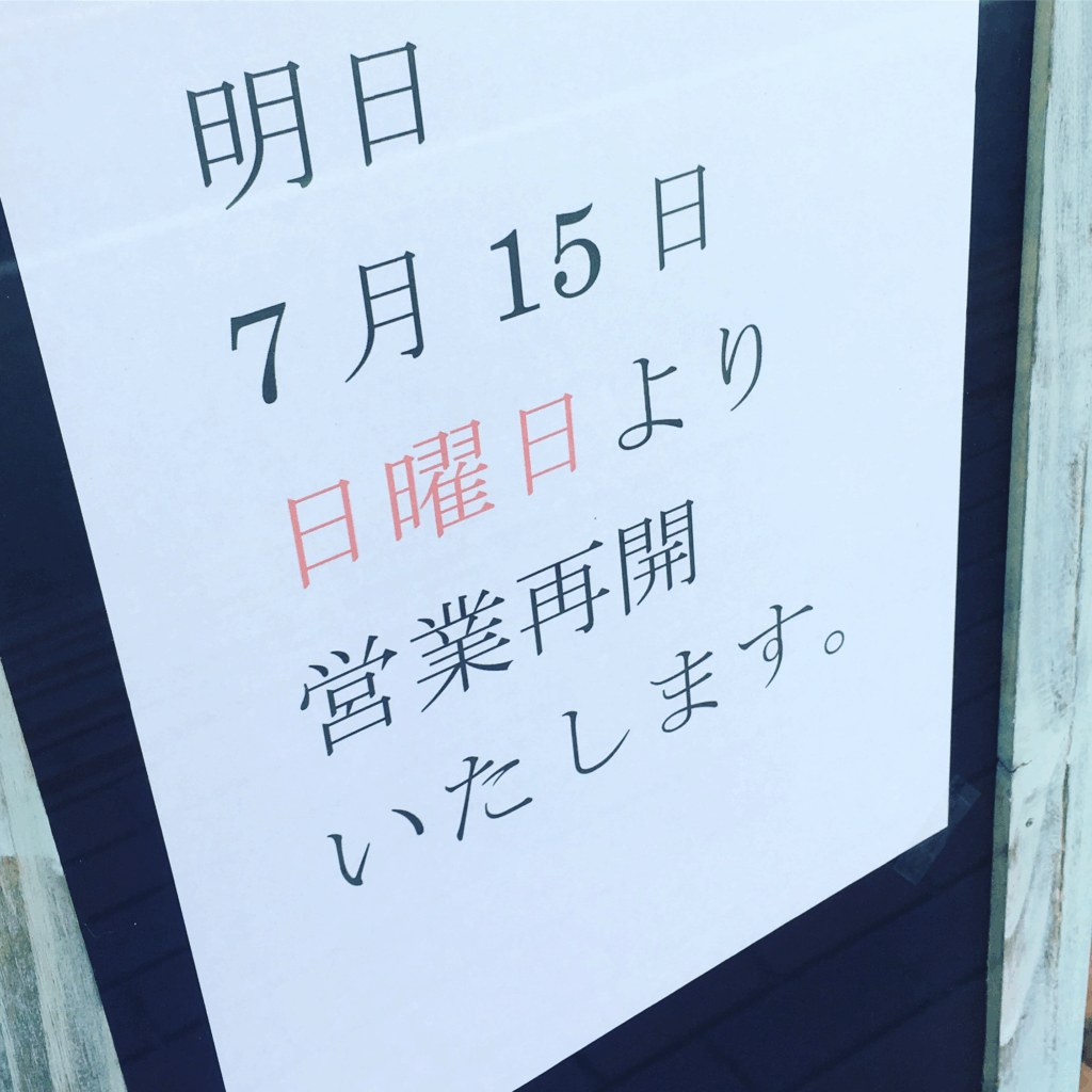 営業再開のお知らせ。