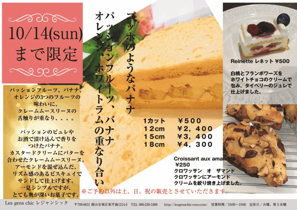 9月、10月限定ケーキ