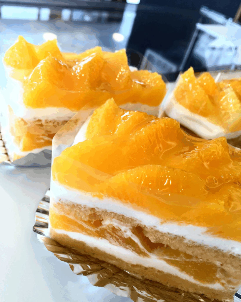 イチゴの入荷が終了いたしましたのでショートケーキはオレンジに フレジエは様々なフルーツに、変更になっています